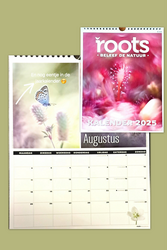 Op de voorkant van de Roots jaarkalender 2025 mijn foto van de zonnedauw en bij de maand augustus mijn foto van het heideblauwtje
